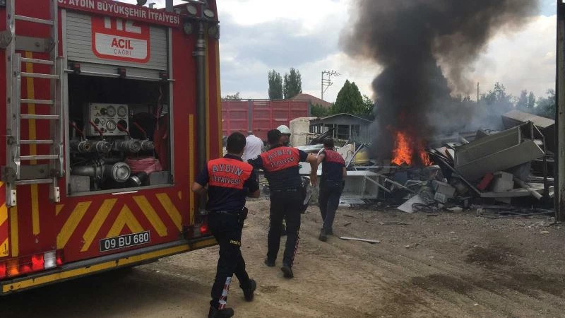 Aydın’ın Efeler ilçesinde benzin istasyonu arkasındaki hurdalık alanda çıkan yangın panik oluşturdu.