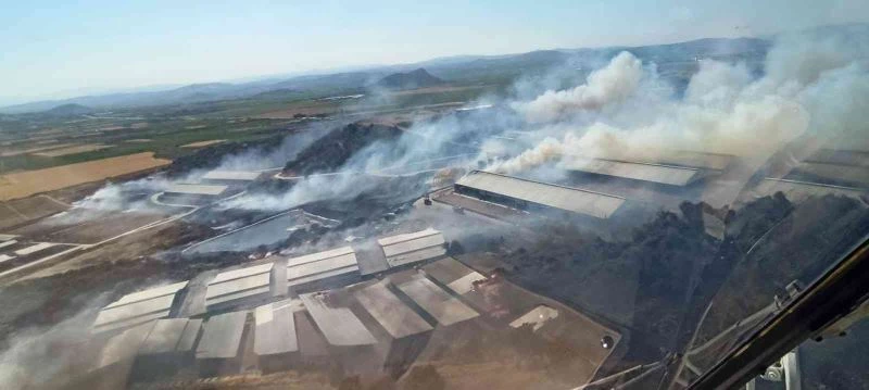 İzmir’in Bergama ilçesinde orman dışı otluk alanda yangın çıktı. Süt işleme tesisini tehdit eden alevlere 2 helikopter ve 6 arazöz ile müdahale ediliyor.