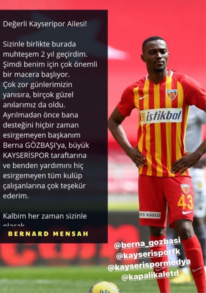 Beşiktaş’a transfer olan Bernard Mensah, Kayserispor’a veda mesajı yayımladı.