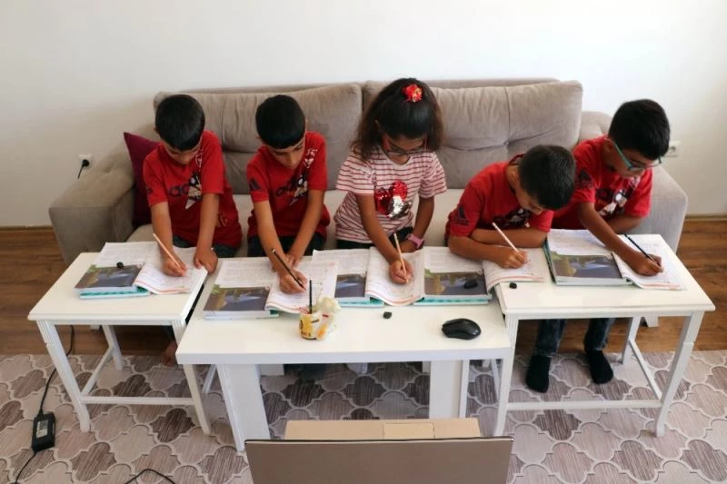 Yozgatlı beşiz kardeşler, çok özledikleri okullarına gidemeseler de sınıf öğretmenleri Mesut Şafak ve arkadaşlarıyla uzaktan eğitimle hem ders işliyor hem de özlem gideriyor. Beşiz kardeşler bir an önce okulların açılmasını ve okula gitmeyi dört gözle bekliyor.