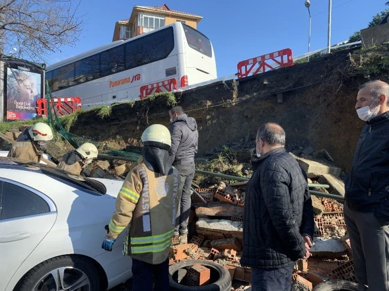 Beşiktaş’ta istinat duvarı çöktü, 3 araç hasar gördü