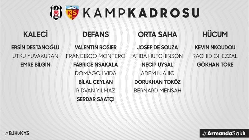 Beşiktaş’ın Kayserispor maçı kamp kadrosu şöyle: