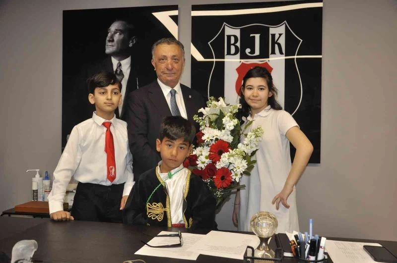 Beşiktaş Başkanı Ahmet Nur Çebi, 23 Nisan Ulusal Egemenlik ve Çocuk Bayramı dolayısıyla başkanlık koltuğunu 1 günlüğüne 5. sınıf öğrencisi Yusuf Mert Dönmez’e devretti. Kutlamalar kapmasında başkanlık devir teslim töreni yapıldı.