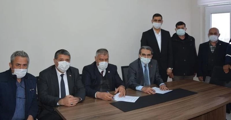 Besni Belediye Başkanı Eyyup Mehmet Emre ile Belediye-İş Sendikası Şanlıurfa Şube Başkanı Adem Şıltak arasında imzalar atıldı.