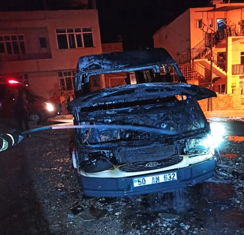 Adıyaman’ın Besni ilçesinde park halindeki minibüs yanarak kullanılamaz hale geldi.
