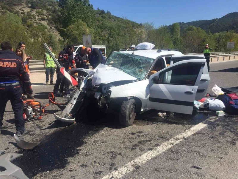 Bilecik’te kontrolden çıkarak beton bariyerlere çarparak durabilen otomobilde sıkışan yolcuyu AFAD ekipleri kurtardı.