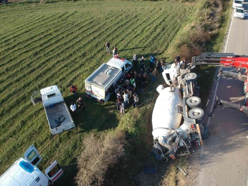 Sinop’un Erfelek ilçesinde beton mikserinin şarampole yuvarlandığı kazada sürücü yaralandı.