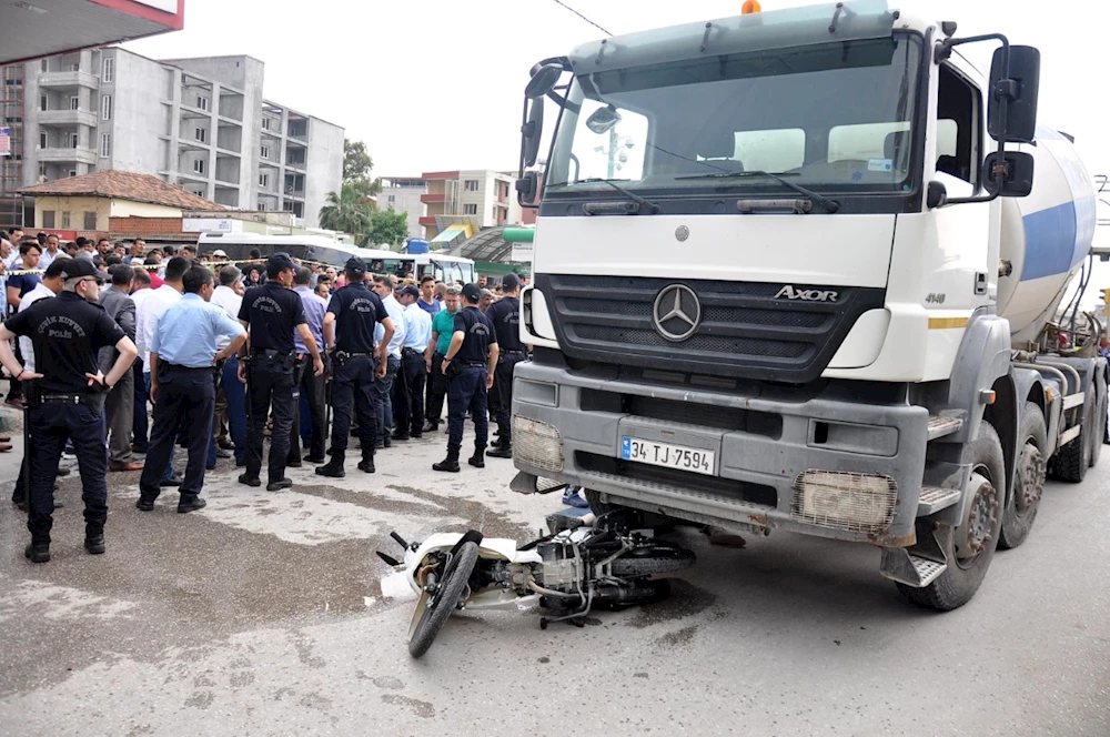 Beton mikserinin altında kalan motosikletin sürücüsü öldü