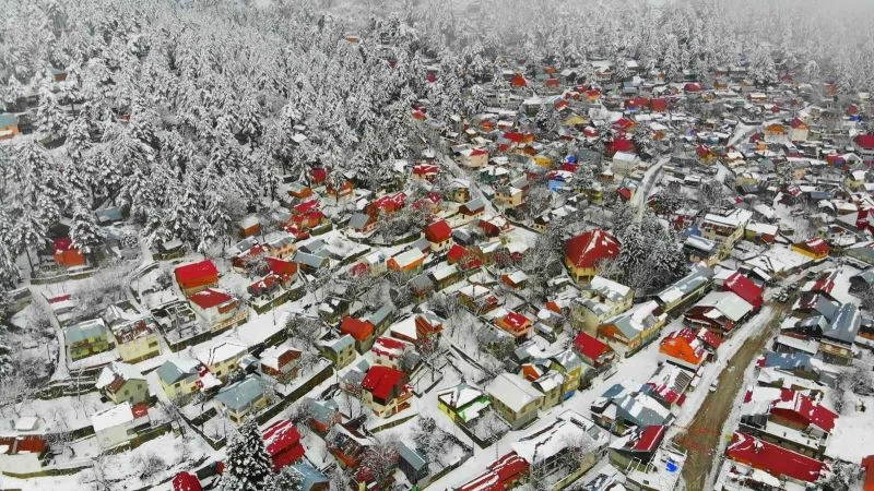 Osmaniye’de Amanos Dağları’nda yer alan Zorkun Yaylası kar yağışıyla birlikte beyaz gelinliğini giyerken, ortaya çıkan kartpostallık görüntüler drone ile havadan görüntülendi.