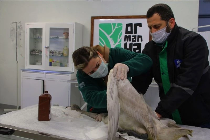 Tüfekle vurularak, kanadından kırılan beyaz kuğu, Ormanya’da tedavi altına alındı.
