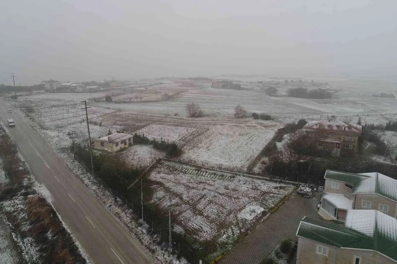 Beyaz örtüyle kaplanan Çatalca havadan görüntülendi