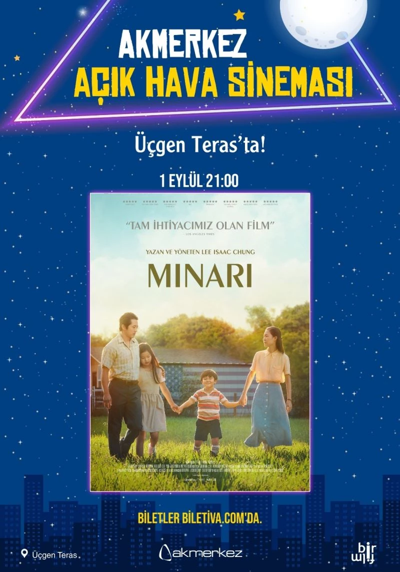 Akmerkez Açık Hava Sineması’nda farklı zevklere hitap eden filmler sinemaseverlerle buluşacak. Sinema, bu akşam 6 dalda aday olduğu Oscar’da En İyi Yardımcı Kadın Oyuncu Ödülü ile dönen ‘Minari’, Güney Koreli göçmen Yi ailesinin 1980’ler Amerika’sında yeni bir hayat kurma hikayesini anlatıyor. Ünlü Fransız şarkıcı Edith Piaf’ın hayatını konu alan Kaldırım Serçesi (La Vie en Rose) de 3 Eylül Cuma akşamı gösterilecek. Şarkıcının çocukluğundan ölümüne kadar geçen sürede, başarılarının, özel hayatındaki çöküşlerin ve hayal kırıklarının beyazperdeye aktarıldığı filmin yönetmen koltuğunda Olivier Dahan oturuyor. Ünlü oyuncu Marion Cotillard’ın performansı ve şarkılarıyla izleyenlere güzel anlar yaşattığı Kaldırım Serçesi, “En İyi Kadın Oyuncu” ve “En İyi Makyaj” dallarında Oscar’a layık görülmüştü.