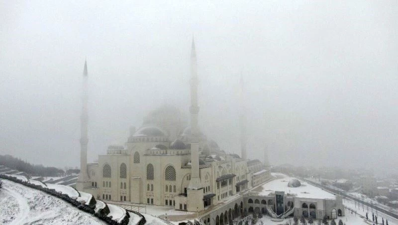 Meteoroloji Genel Müdürlüğü tarafından günler öncesinden yapılan uyarılar sonrası İstanbul’da kar yağışı başladı. Anadolu Yakası’nın yüksek kesimlerinden olan Çamlıca adeta beyaza büründü. Yüksek kesimlerde başlayan kar yağışının ilerleyen saatlerde şehir merkezlerinde de etkili olması bekleniyor. Öte yandan, kar yağışı sonrası beyaza bürünerek kartpostallık görüntüleri aratmayan Çamlıca Camii ise havadan görüntülendi.