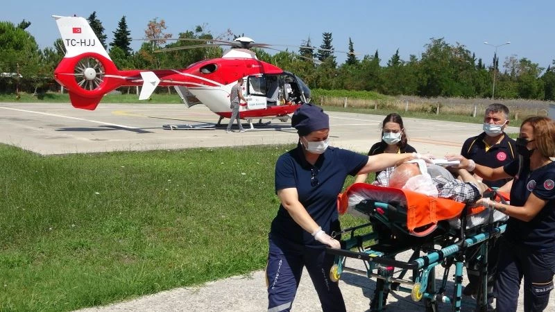 Samsun’da beyin kanaması geçiren yaşlı adam Sağlık Bakanlığına ait ambulans helikopterle hastaneye yetiştirildi.