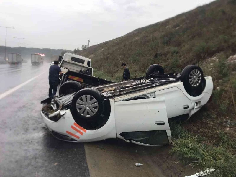 Beykoz’da Kuzey Marmara Otoyolu’nda yağışlı hava sebebiyle bir otomobil kontrolden çıkarak refüje çarpıp takla attı. Kazada otomobilin sürücüsü yaralandı.