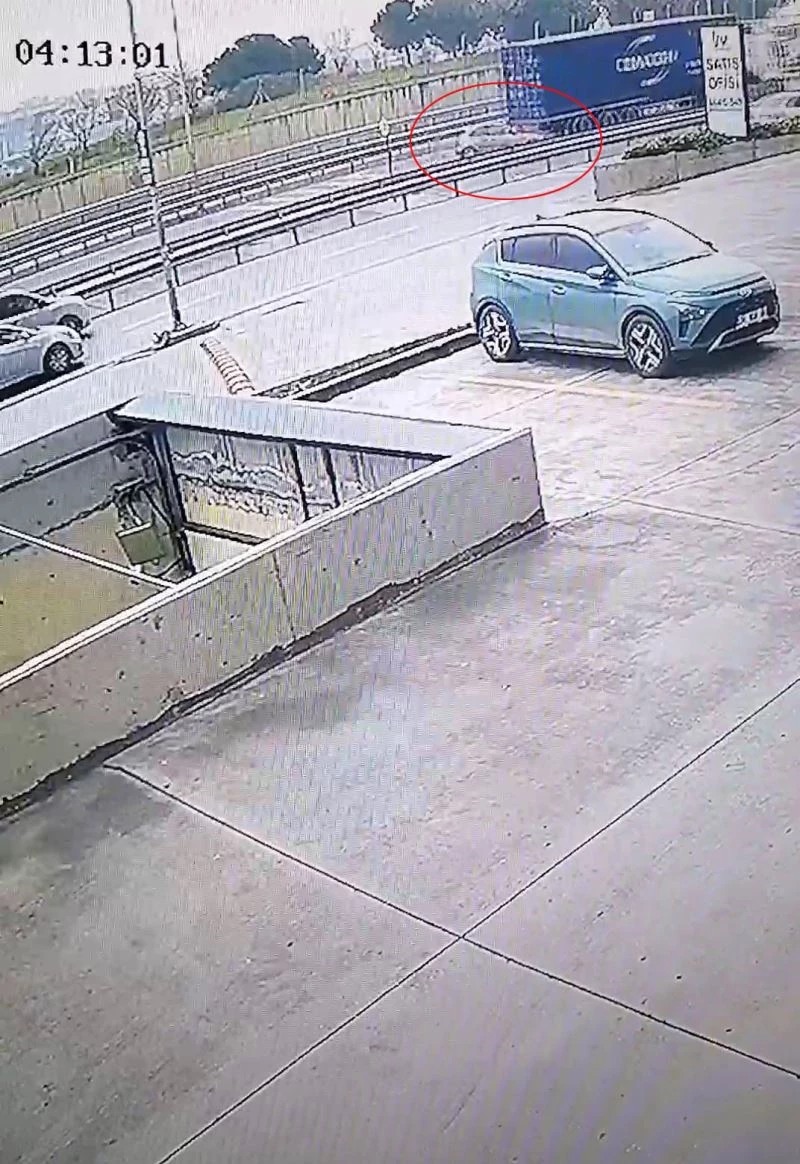 Beylikdüzü Ambarlı Liman Yolu’nda 3 kişinin hayatını kaybettiği kaza güvenlik kamerasına yansıdı. Görüntülerde hızla gelerek ve kontrolden çıkan otomobil, tırın altına girerek bariyerlere çarpıyor.