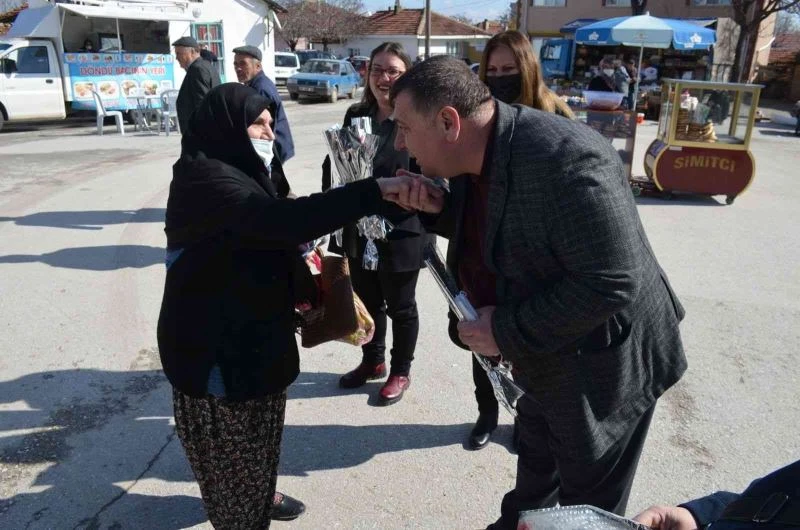 Eskişehir’in Beylikova ilçesinde belediye başkanı ve belediye personeli kadınlara karanfil verdi.