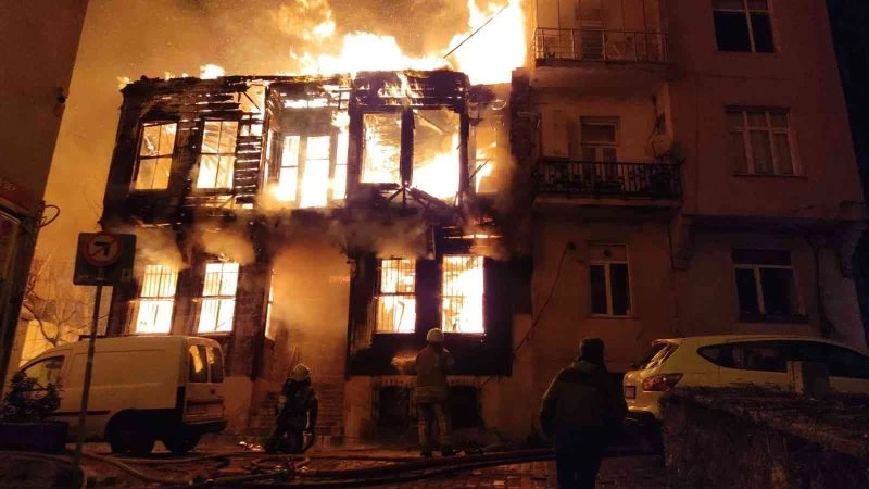 Beyoğlu’nda 2 katlı ahşap bina alev alev yandı: 2 yaralı