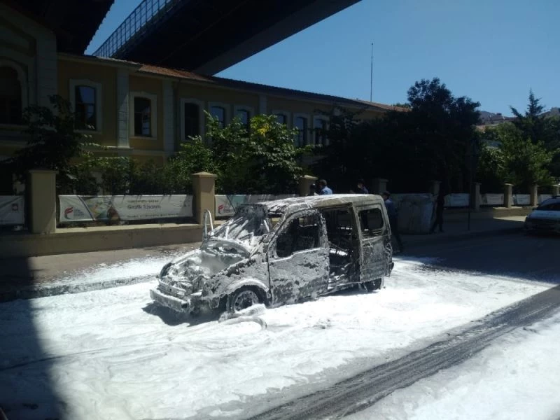 Beyoğlu’nda seyir halindeki ticari araç bir anda alev aldı. Sürücüsünün son anda kendi dışarı attığı araç alev topuna döndü. Alev alev yanan araç itfaiyenin müdahalesiyle söndürüldü.