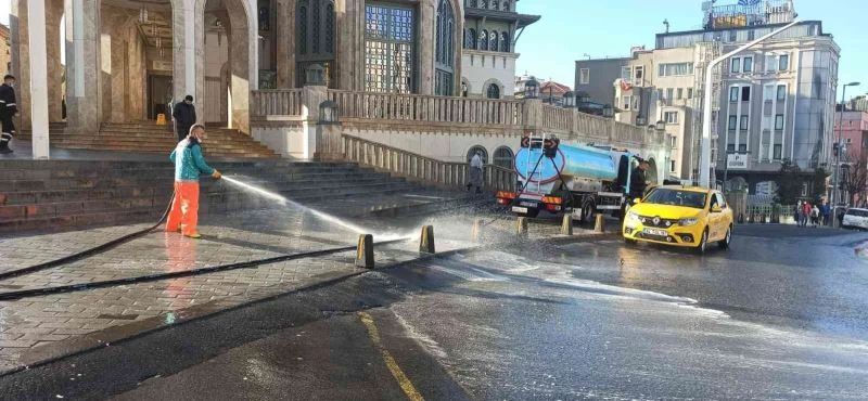 İstanbul’un en yoğun ilçelerinden Beyoğlu’nda bayram öncesi hummalı bir temizlik çalışması başlatıldı. İlçede bulunan ibadethaneler dip köşe temizlenirken cadde ve sokaklar da sabunlu su ile yıkanıyor.