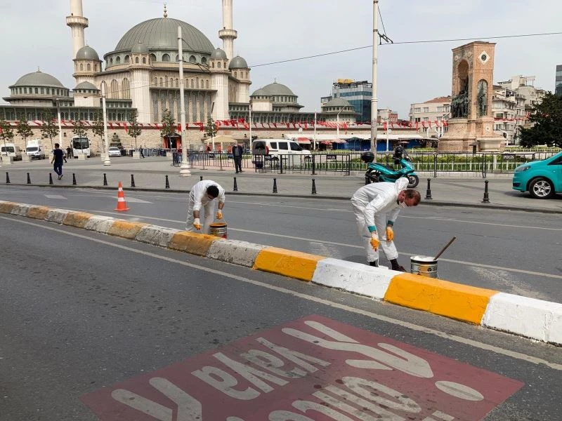 Kaldırımlarda yapılan tretuvar boyama çalışmalarının startı, Taksim Camii’nin açılış töreni nedeniyle Taksim Meydanı ve çevresinden verildi. İlçe genelinde yapılacak olan çalışma ile renkleri yıpranmış ve solmuş kaldırım taşlarının tamamının boyanarak yeniden canlandırılması hedefleniyor.