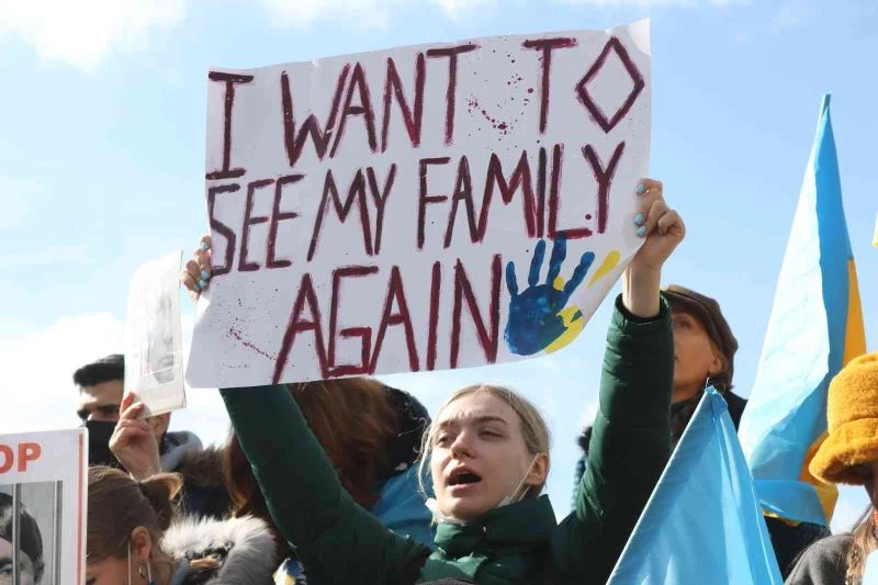 İstanbul’da yaşayan Ukraynalılar Beyoğlu Tepebaşı’nda bir kez daha toplanarak Rusya’nın Ukrayna’daki saldırılarını protesto etti. Yaklaşık 100 kişilik grup savaş karşıtı sloganlar atıp, üzerinde “Savaşa hayır, NATO havayı kapat, Ukrayna’da savaş dursun” yazılı dövizler taşıdı. Bazı eylemcilerin Ukrayna ulusal marşının okunduğu esnada gözyaşlarına hakim olamadığı görüldü.