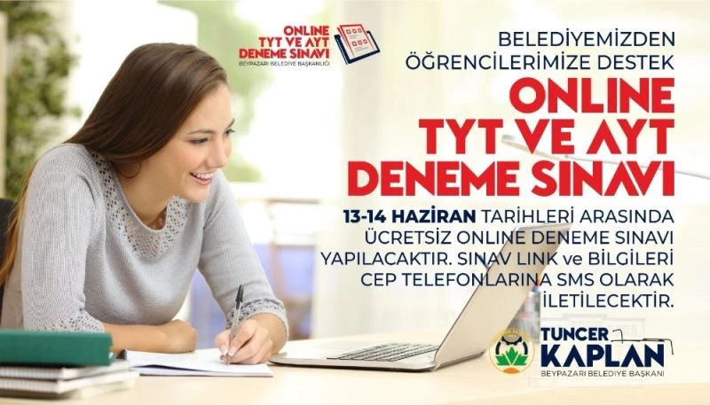 Bu yıl üniversite sınavlarına girecek öğrenciler için Beypazarı Belediye Başkanlığı 13-14 Haziran tarihlerinde internet üzerinden online TYT ve AYT sınavı düzenleyecek.