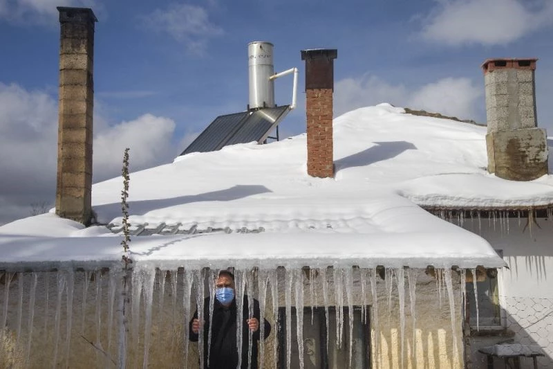 Konya’nın Beyşehir ilçesinde kar yağışı sonrasında hava sıcaklıklarının eksi dereceleri göstermesiyle göl kıyısında bulunan kamelyalar ile bazı evlerin çatılarında buz sarkıtları oluştu. Bir evin müştemilatının damından sarkan uzun buz sarkıtları dikkat çekerken, fotoğrafçılar buz sarkıtlarını fotoğrafladı.