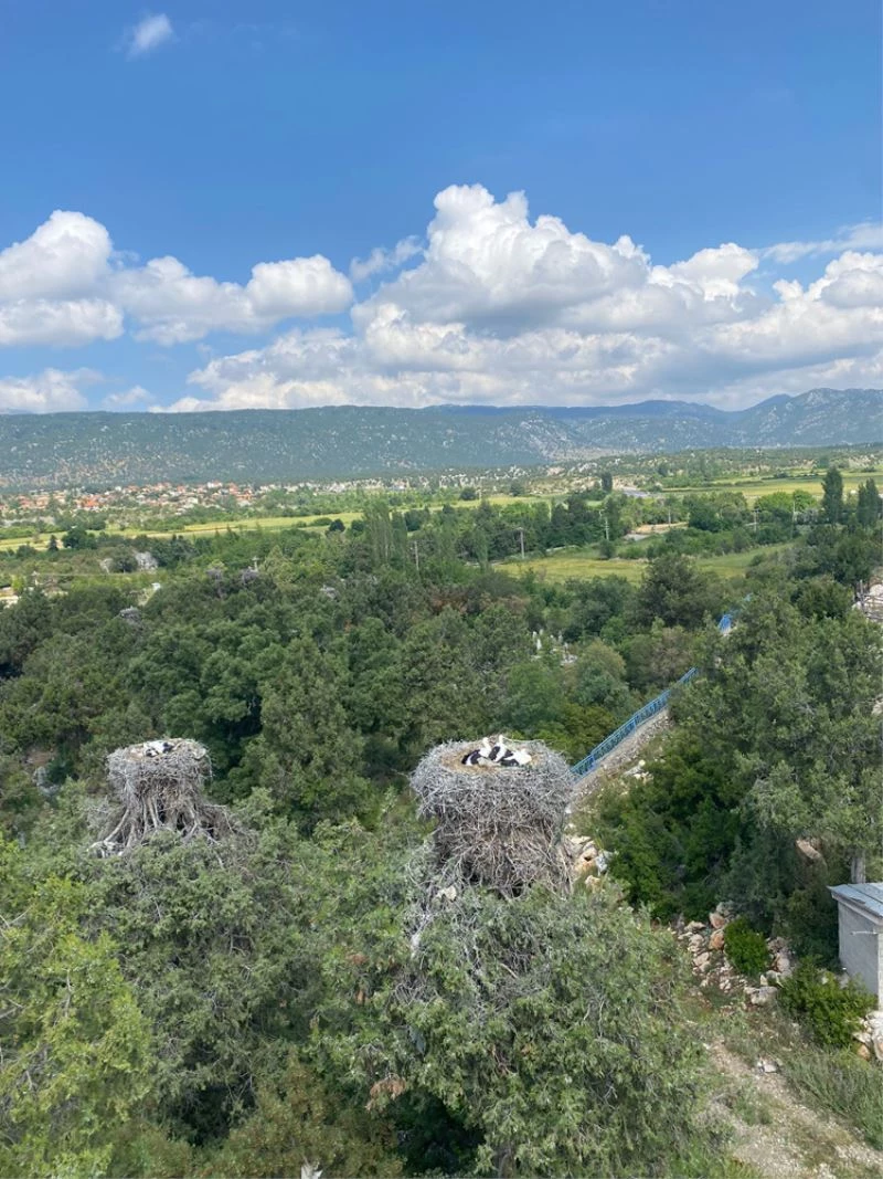 ANTALYA - Konya'nın Beyşehir ilçesine gelen leylekler, yumurtadan çıkan yavrularını büyütüyor.