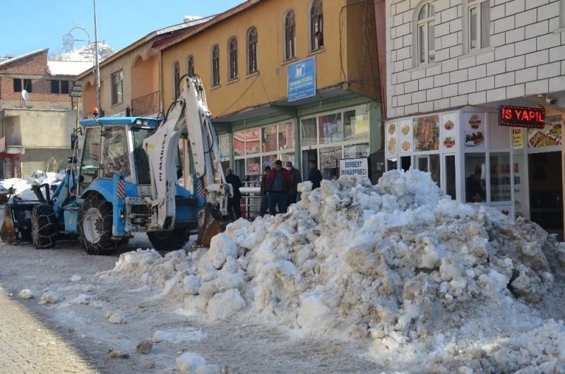 Şırnak’ın Beytüşşebap ilçesinde ekiplerin karla mücadelesi devam ediyor. Çetin geçen kış aylarında ilçe merkezinden binlerce ton kar kütlesi kamyonlarla taşındı.