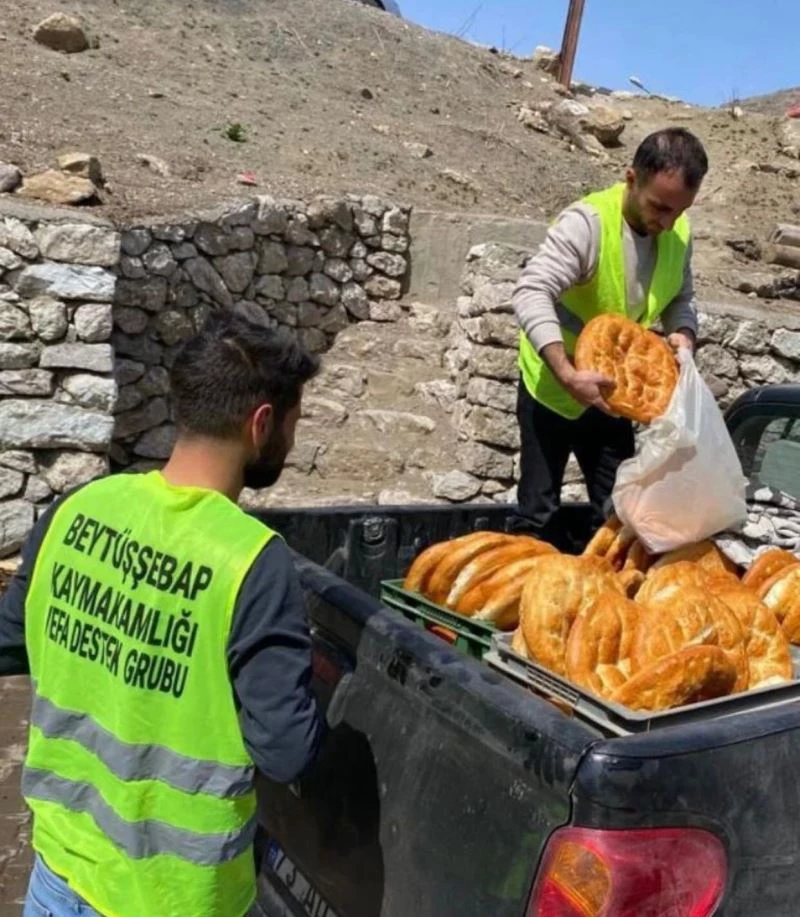 Şırnak’ın Beytüşşebap ilçesinde kaymakamlığa bağlı Sosyal Yardımlaşma ve Dayanışma Vakfı (SYDV) merkez ve köylerde ihtiyaç sahibi 300 aileye sıcak ekmek dağıtıyor. Ramazan ayı boyunca her gün sıcak ekmekleri fırından sosyal vefa ekipleri, ev ev dolaşarak ekmek ve nakdi yardımları dağıtıyor. Vakıf Müdürü Ali Uçar, ilçe genelinde Kaymakam Hasan Uğuz’un talimatlarıyla 300 aileye her gün sıcak ekmek dağıtımı yaptıklarını, durumu iyi olmayan ailelere de sosyal vefa ekipleri nakdi yardımlar yaptığını ifade etti.
