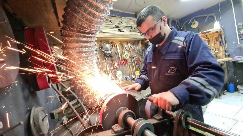 Karabük’te 39 yıldır bıçak bileyiciliği yapan Ali Açıkgöz, Kurban Bayramı’na iki gün kala siparişleri yetiştirmek için gece gündüz çalışıyor.