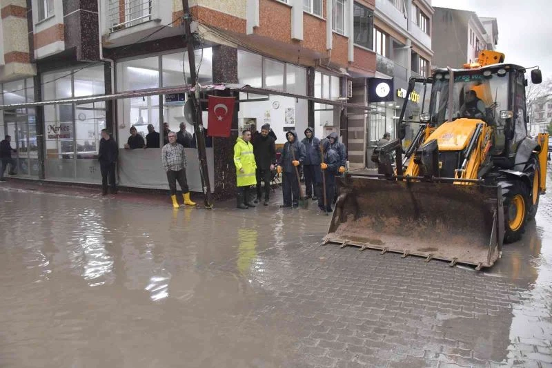 Biga Belediyesi ekiplerinden kuvvetli yağışa anında müdahale