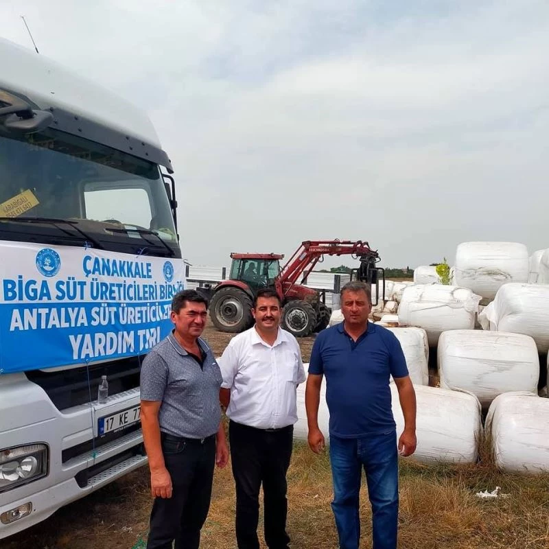 Biga Süt Üreticileri Yönetim Kurulu Başkanı Mehmet Ali Çimen konuya ilişkin yaptığı açıklamada, "Biga ilçesi Süt Üreticileri Birliği olarak Antalya Manavgat Süt Üreticileri Birliğinden aldığımız bilgiler neticesinde bölgede oluşan yangınlar sebebiyle süt üreticilerinin yanında olabilmek adına yardım tırı gönderilmesine karar verdik. Yeniçiftlik Kooperatifi’mizin üretimini yaptığı paketli mısır sılajı muhafaza kolaylığı ve etkili bir kaba yem oluşu sebebi ile bölgede ki süt üretiminin devamlılığına katkı sağlanması amaçlanmıştır. Biga Süt Birliği olarak Antalya Manavgat Bölgesine ve Yeniçiftlik Kooperatifi olarak da Muğla’nın Bodrum ilçesine olmak üzere iki adet yardım tırı Çanakkale Biga’dan gönderilmiştir. Bölge üreticilerine kayıpları için sabırlar, yeniden üretime geçebilmeleri için kolaylıklar dileriz" dedi.