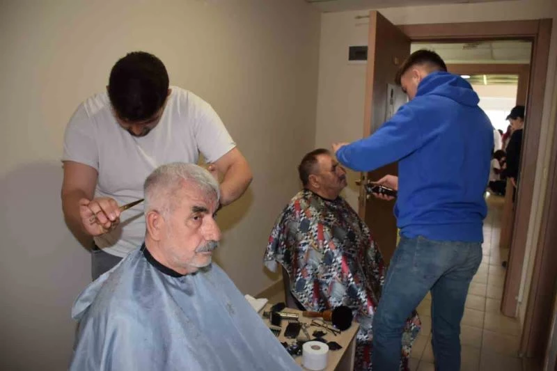 Deprem bölgelerinden Biga’ya gelerek Kredi Yurtlar Kurumu (KYK) Ahmet Bican Öğrenci Yurdu’na yerleştirilen depremzedelere, kişisel bakım hizmeti veriliyor.