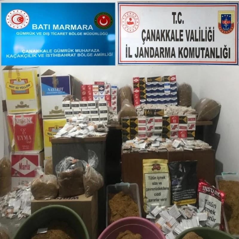 Çanakkale’nin Biga ilçesinde gerçekleştirilen operasyonda 70 bin adet doldurulmuş makaron, 5 bin 600 bandrolsüz boş makaron ve 80 kilogram bandrolsüz kıyılmış tütün ele geçirildi.