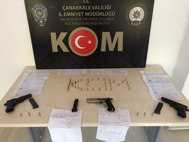 Biga Cumhuriyet Başsavcılığının talimatlarıyla aylar önce başlatılan soruşturmalarda Çanakkale Kaçakçılık ve Organize Suçlarla Mücadele (KOM) Şube Müdürlüğü ve Biga Emniyet Müdürlüğünün aylardır izlediği tefecilere operasyon gerçekleştirildi. İki ayrı operasyonda şüphelilerin Biga ve Gönen’de bulunan ev ve iş yerlerinde yapılan aramalarda 2 ruhsatsız tabanca, 1 kuru sıkı tabanca, 44 mermi, 13 tane suça ilişkin senet, 3 adet şikayetçi vatandaşlara ait senet, 3 adet şikâyetçi vatandaşlara ait tapu fotokopisi, 58 tane boş senet ele geçirildi. Gözaltına alınan şüphelilerden biri Biga Sulh Ceza Hakimliğinin kararı ile tutuklanarak cezaevine gönderilirken, diğer şüpheli ise adlî kontrol şartıyla serbest bırakıldı.
