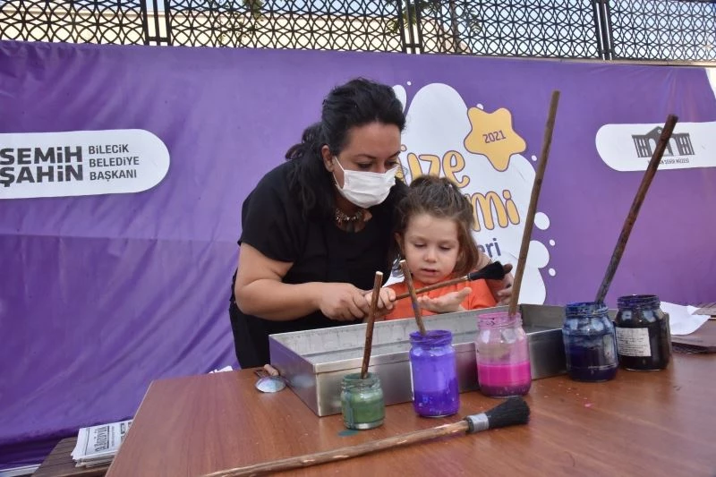 Bilecik Belediyesi tarafından geçtiğimiz yıl başlayan ve bu yıl da devam eden Müze Akademi etkinlikleri kapsamında çocuklar, ebru ve hat sanatı ile tanıştı, zumba dansı yaptı. Yaşayan Şehir Müzesinde bir araya gelen çocuklar önce Ebru Sanat Öğreticisi Nazli Zorçeken ve Hat Sanatı öğreticisi İsmail Kısık’tan nasıl yapıldığını öğrendi daha sonra kendi elleriyle hayallerini sergiledi. Geçtiğimiz hafta çömlekçilik, tişört boyama ve müzik dans aktivitelerine katılan çocuklar, yaptıkları çalışmalarla hatıra fotoğrafları çektirdi. Belediye Başkanı Semih Şahin’in çocuklara hediyesi olarak ücretsiz düzenlenen etkinliklere çocuklar ve aileleri büyük ilgi gösterdi.