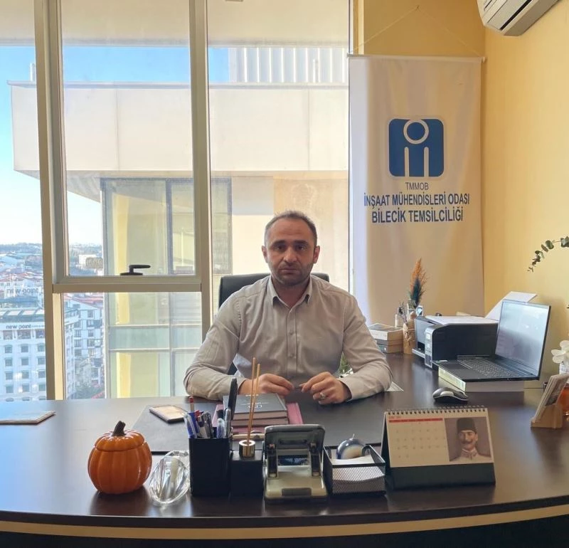 Gündüz, açıklamasının devamında, "Bilecik merkez ilçesi için konuşacak olursak, Maden Tetkik ve Arama tarafından hazırlanan aktif fay haritalarına baktığımızda güney ve kuzeyimizde aktif faylar bulunmaktadır. Bu faylara olan uzaklıkta göz önünde bulundurularak, proje tasarımlarında kullanılan Türkiye Deprem Tehlike Haritasına bakıldığında geçtiğimiz günlerde Kahramanmaraş ve çevresinde oluşan depremlerin meydana getirdiği etkin yıkıcı ivme değerlerinin Bilecik merkez ilçesinde oluşması öngörülmemektedir. Fakat hiçbir zaman tedbir elden bırakılmayıp, daha fazla tedbir alınması yönünde çalışmalar yapılması gerekmektedir. Bilecik merkez ilçesinde mevcut yapı stoku 5 bin adet civarında olduğu bilinmektedir. Bu yapı stokunun (özellikle 2000 yılı öncesi) depreme dirençli olup olmadığı gözden geçirilmeli, bir plan istikâmetinde güçlendirilmesi ve yenilenmesi gereken binalar belirlenmelidir. Yapı üretim sürecinin önemli bir parçası olan şantiye şefliği konusu sorunun bir parçası olmaktan çıkartılarak ayrı bir uzmanlık alanı olarak değerlendirilmeli ve her şantiyeye 1 şef görevlendirilmelidir. Odamız bununla ilgili meslek içi eğitim programına hazırdır" dedi.