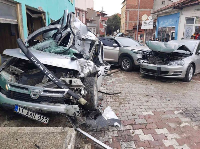Bilecik’te freni boşalan kamyon park halindeki 3 aracı adeta biçti