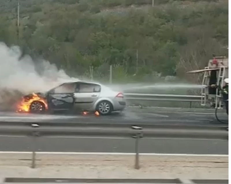 Bilecik’te seyir halindeyken bir anda alev alan otomobil kullanılamaz hale geldi. Yangın nedeniyle Bilecik-Bozüyük karayolunda uzun araç kuyrukları oluştu.