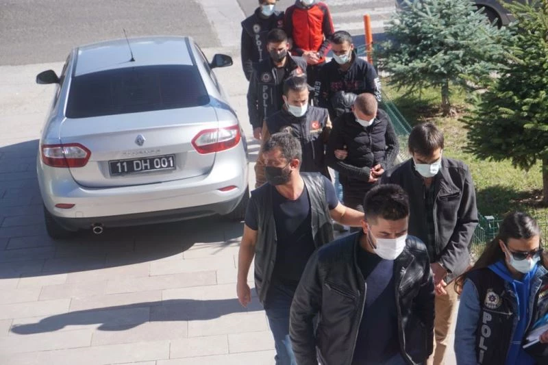 Bozüyük Narkotik Suçlarla Mücadele Grup Amirliği ilçedeki Yeni Mahallede bulunan bir evde olağan dışı hareketlilik ve sirkülasyon olduğunun fark etti. Evi bir süre takibe alan ekipler, bahse konu ikamete gece saatlerinde operasyon yaptı. Yapılan operasyonda ikamette bulunan T.B. (20), S.S. (29), M.E. (32) ve O.A.(35) isimli şahıslar etkisiz hale getirilerek yakalandı. İkamette ve şahısların üzerlerinde yapılan arama da toplamda piyasa değerleri 36 bin lira olan 448,43 gram esrar maddesi, 115, 83 gram bonzai, 6, 55 gram metamfetamin, 4 adet kırmızı reçeteye tabi sentetik ecza, 2 adet ecstacy uyuşturucu hap, 4 adet uyuşturucu madde kullanımına yarayan cam aparat, 1 adet kilit tertibatlı bıçak, bir adet tabanca ve tabancaya ait şarjör, 7 adet tabancaya ait fişek ele geçirildi. Gözaltına alınan 4 şahıs adliyeye sevk edildi.