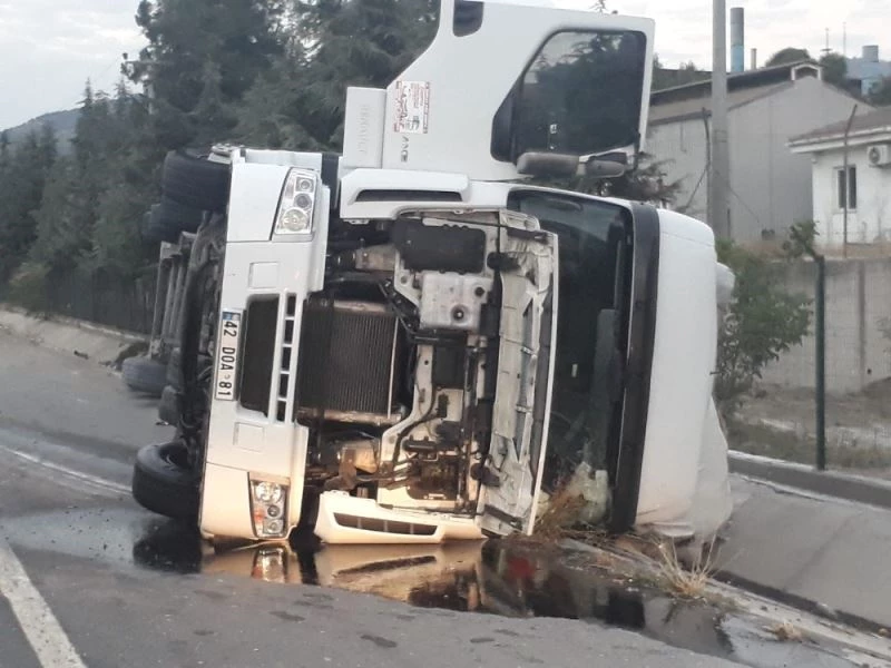 Bilecik’te süt tozu yüklü tırın devrilmesi sonucu meydana gelen trafik kazasında sürücü hafif yaralandı.