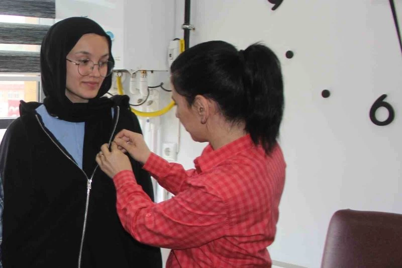 Yapılan konuşmalar sonrası Kulüp Yönetim Kurulu Üyesi Sevda Barut Keleş tarafından sporcuya küçük altın takıldı.