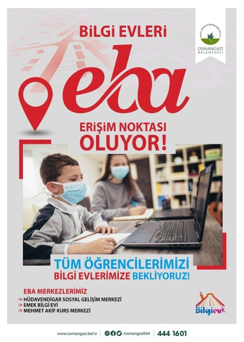 Osmangazi Belediyesi’nin en önemli sosyal projelerinden biri olan Bilgi Evleri, uzaktan eğitime katkı sunmak amacıyla EBA erişim noktası olacak.