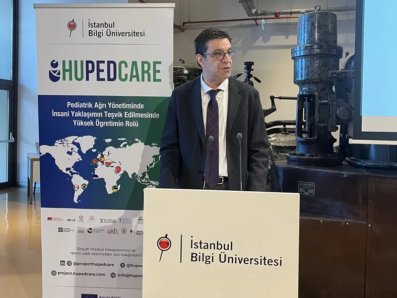 "Pediatrik bakım ise bu bağlamda özel bir öneme sahip. Pediatrik bakım, çocukların yalnızca hastalıklarının tedavisini değil, fiziksel, duygusal, bilişsel ve sosyal gelişimlerini kapsayan bütüncül bir yaklaşımı gerektiriyor. Bu anlayıştan hareketle tasarlanan HUPEDCARE Projesi, dijital dönüşümü ve uluslararası işbirliğini teşvik ederek pediatrik ağrı bakımında insani yaklaşımı güçlendirmeyi ve bilginin sürdürülebilir, yenilikçi yöntemlerle paylaşılmasını hedefliyor. İstanbul Bilgi Üniversitesi olarak, nitelikli sağlık profesyonellerinin yetiştirilmesini, güçlü bilimsel ortaklıkların kurulmasını ve topluma anlamlı katkılar sunmayı temel sorumluluklarımız arasında görüyoruz."