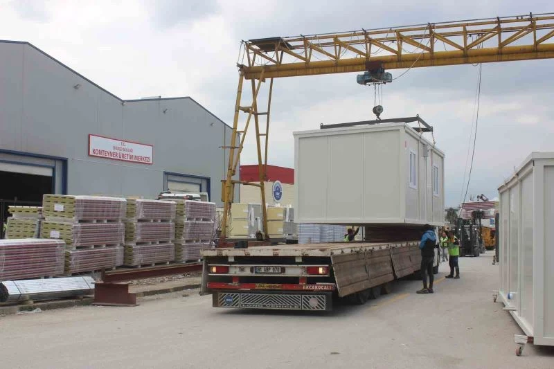 Düzce Valiliği koordinasyonu ile üretimi yapılan bin 576 konteyner deprem bölgesine gönderildi.