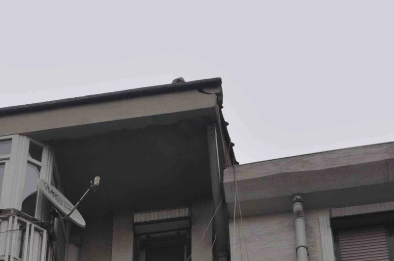 Eskişehir’de işlek bir caddedeki yüksek katlı binanın çatısında kırılan ve düşmek üzere olan taş parçası çevre esnafını kaygılandırdı.