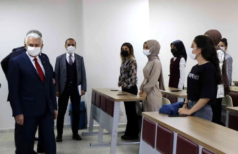Sınıflarda üniversite öğrencileriyle bir araya gelen Binali Yıldırım, kısa süre sohbet etti.