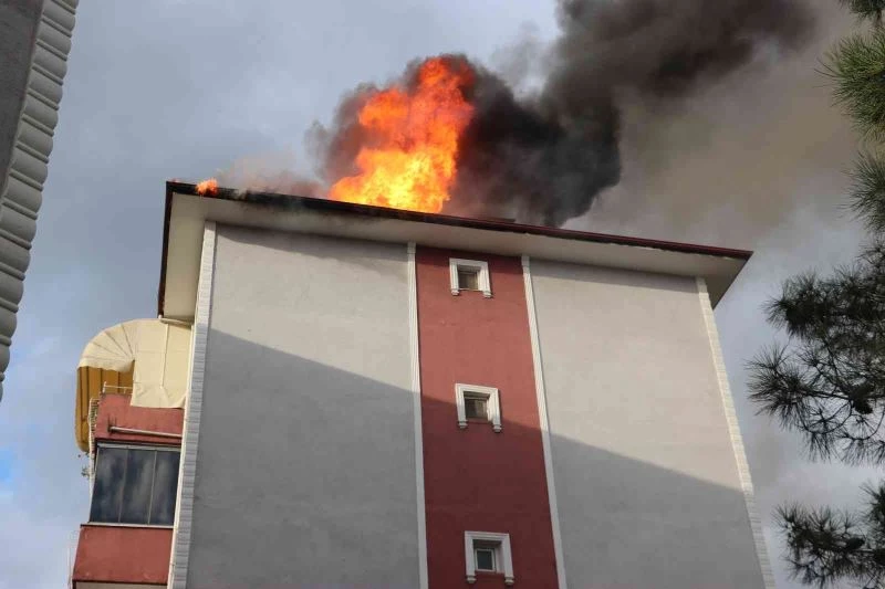 Binanın çatısında çıkan yangın mahalle sakinlerini korkuttu